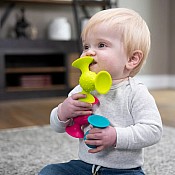 The ultimate KEEP-THEIR-ATTENTION TOY has arrived! What happens when babies and toddlers encounter playful colors, fun sounds, fresh tactile experiences and super-suction? Meet pipSquigz, a set of three Fun Little Suckers for ages 6 months and up. Adored by baby and parents alike, pipSquigz are perfect for the stroller, highchair, bathtub, and anywhere-travel. Simply push pipSquigz down onto any smooth surface and watch baby interact with this high-quality silicone suction toy. With super-suction, each shape can be tugged, pushed, shaken and pulled. Or, push and stick the shapes together for new play experiences. Babies delight in the versatile movement, sound and texture. Pediatricians note sensory integration as a crucial developmental milestone for infants. pipSquigz are right on target: The wavy ridges, bumps, and debossed, smiling face stimulate the fingers. The "just right" rattles and the POP of the suction cups thrill the ears. The brilliant colors mesmerize the eyes while the soft, BPA-free silicone invite sore gums to be soothed. pipSquigz is an all-in-one sensory learning experience! Not to mention, they're also wonderfully portable and completely dishwasher safe. Discover peace of mind for parents and teething babies with pipSquigz. pipSquigz The ultimate KEEP-THEIR-ATTENTION TOY for babies and toddlers Encourages exploration & sensory awareness Enhances vision, hearing, touch, movement Innovative suction holds pipSquigz to smooth surfaces, no residue! Perfect for the stroller, highchair, bathtub, and anywhere-travel Push pipSquigz down on any smooth surface, watch baby interact Stimulate hearing: gentle rattles in each shape, "POP!" as pipSquigz separate Stimulate touch: wavy ridges, bumps, debossed, smiling face Stimulate vision: brilliant colors; lime, fuchsia, teal Stimulate motor skills: Engage both small and large motor skills Each shape can be tugged, pushed, shaken and pulled Push and stick shapes together for new play experiences Includes 3 pipSquigz - 1-suction-cup, 2-suction-cup, 3-suction-cup Made of high quality silicone Easy to clean and dishwasher safe BPA-free, safe as a teething toy Tested to the highest safety standards
