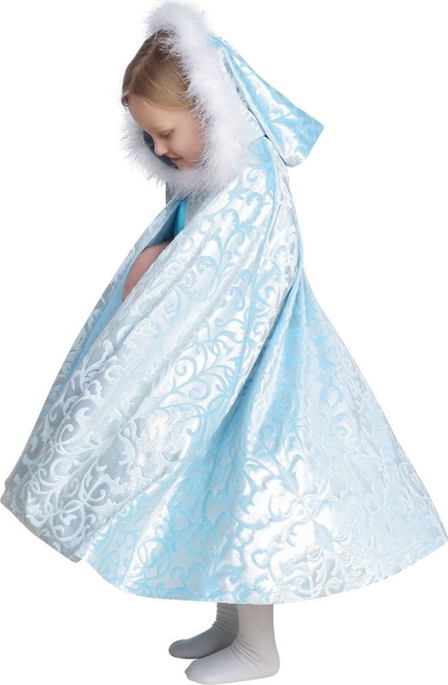 The ultimate in playtime luxury! Same style as our best selling velvet capes, updated in a new soft patterned velvet. There is a hint of metallic glimmer embossed into the beautiful blue fabric. Velcro closure at neck for easy, safe, on and off wear. Perfect cover-up for a special dress, pageant, dance or skating outfit. Your child will be in frosty splendor. One Size. Center back length 29 inches.