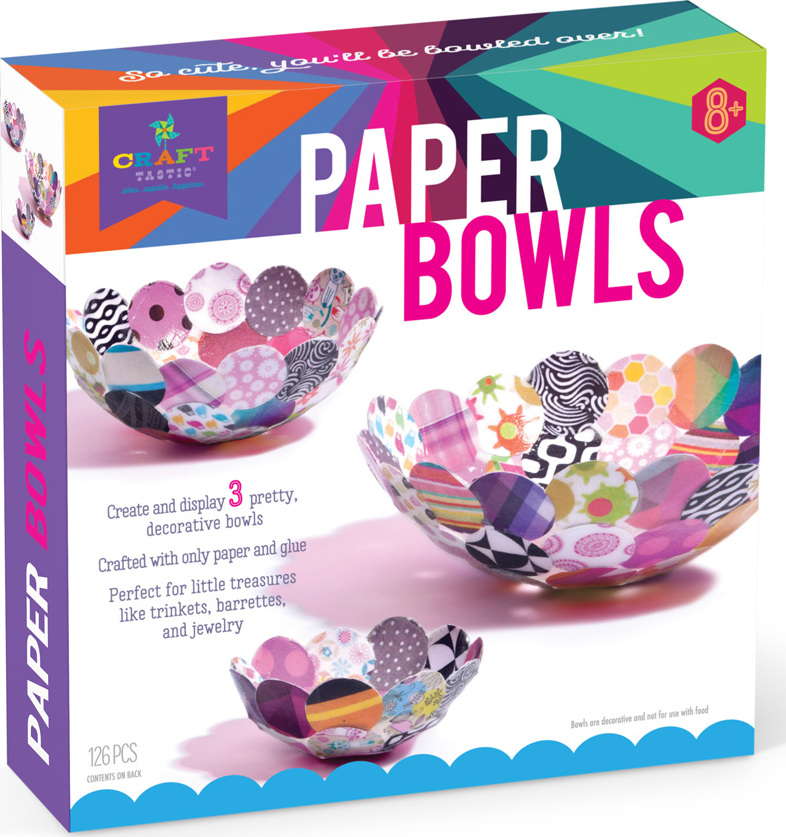 So cute, you'll be bowled over! Make our pretty decorative bowls using only paper and glue. Just apply our colorful paper circles over our bowl forms, add a few coats of glue, let dry, remove forms and, voila! They're ready for all to see. Perfect for little treasures like barrettes, trinkets and jewelry (not for use with food). Also a great handmade gift.