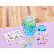 1 Plastic aquarium with lid, 5 Mini axolotl figures, 2 Colors of magic mix powder, 1 Colorful sticker sheet, 1 Glow in the dark sticker sheet, 1 Sheet of bubble rhinestones, Assorted foam bubbles, 1 Stir stick and Instructions