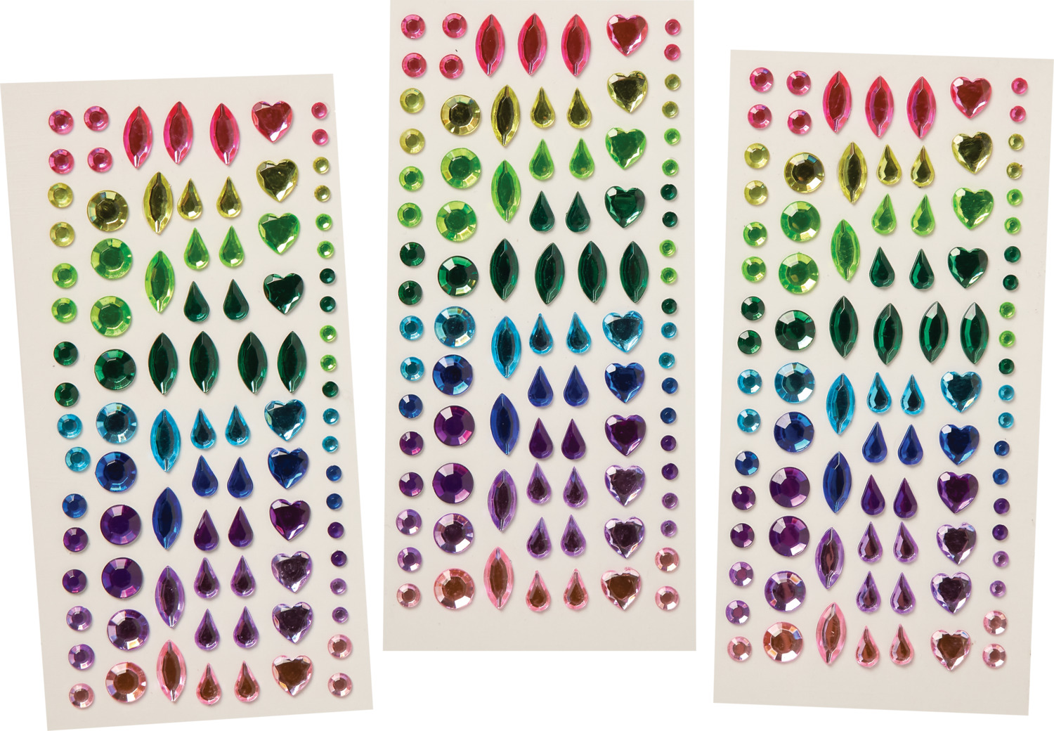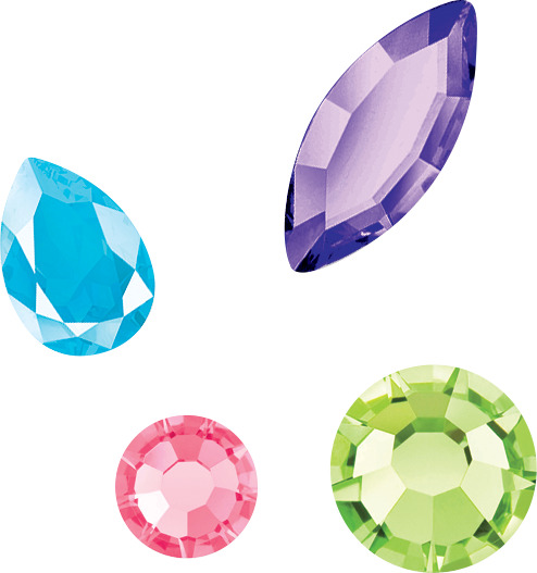 - Over 270 self-adhesive gemstones in multiple colors and shapes