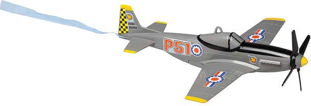 Flying toy on a string. Hands from ceiling and motorized prop makes it fly in a circle on the string. required 1 AA battery not included. Approximately 9 inches long with 9 1/2 inch wingspan.