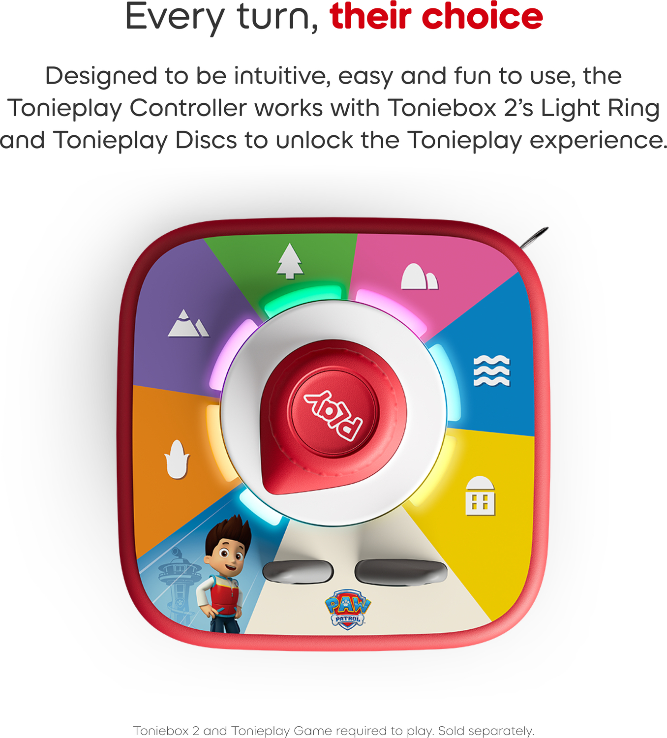 Together with a Tonieplay Game, the Tonieplay Controller turns their Toniebox 2 into a safe and screen-free audio gaming experience. It’s intuitive, easy, and fun to use. The Tonieplay Controller interacts with Toniebox 2’s light ring and Tonieplay discs to unlock the full Tonieplay experience.