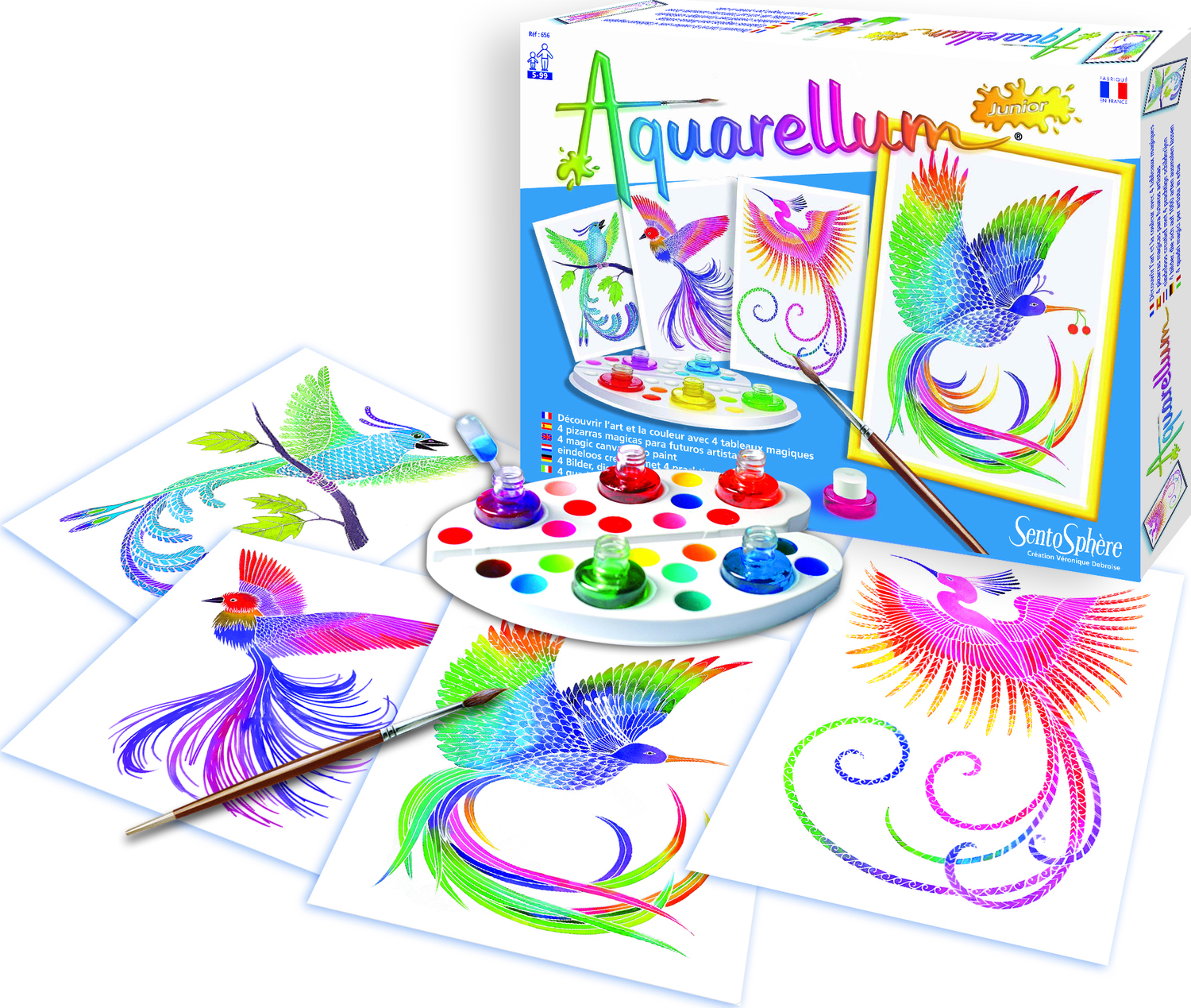 Fantastic! With just a few drops of paint all children can create a true masterpiece! Aquarellum Junior is based on a masking technique on vellum paper, allowing the paint to adhere only to selected areas. The design is gradually revealed with every brush stroke and may be painted over repeatedly to obtain a perfect picture. This activity is ideal to initiate children in the art of painting, understanding the mixing of colours and stimulating their imagination and concentration.