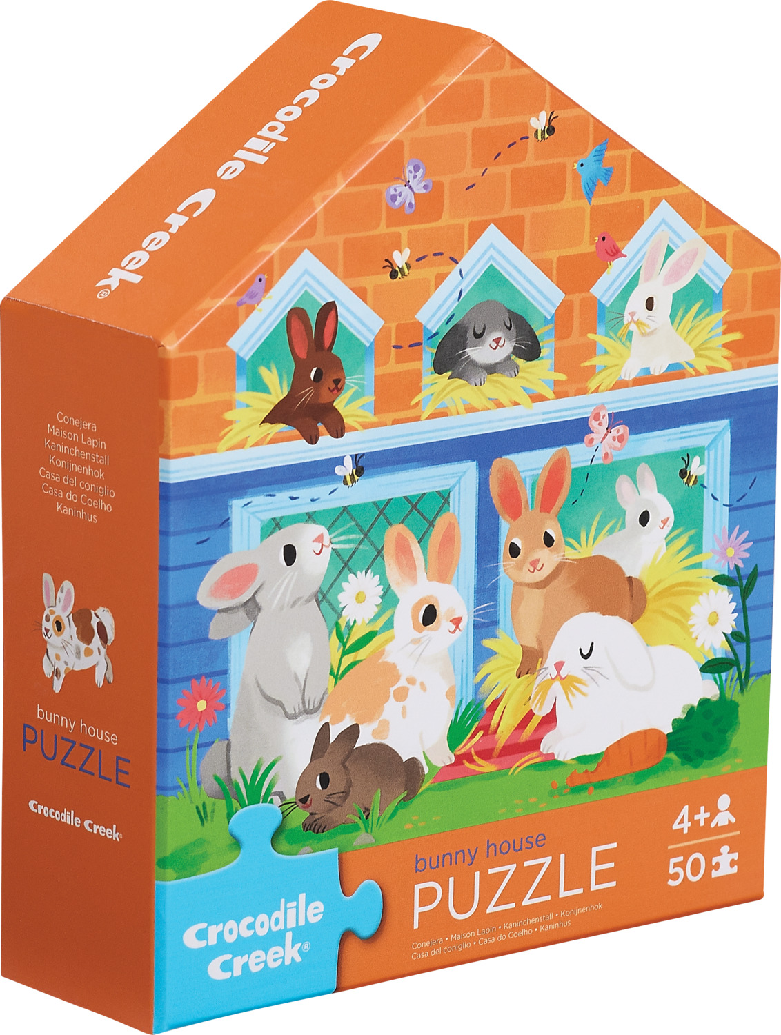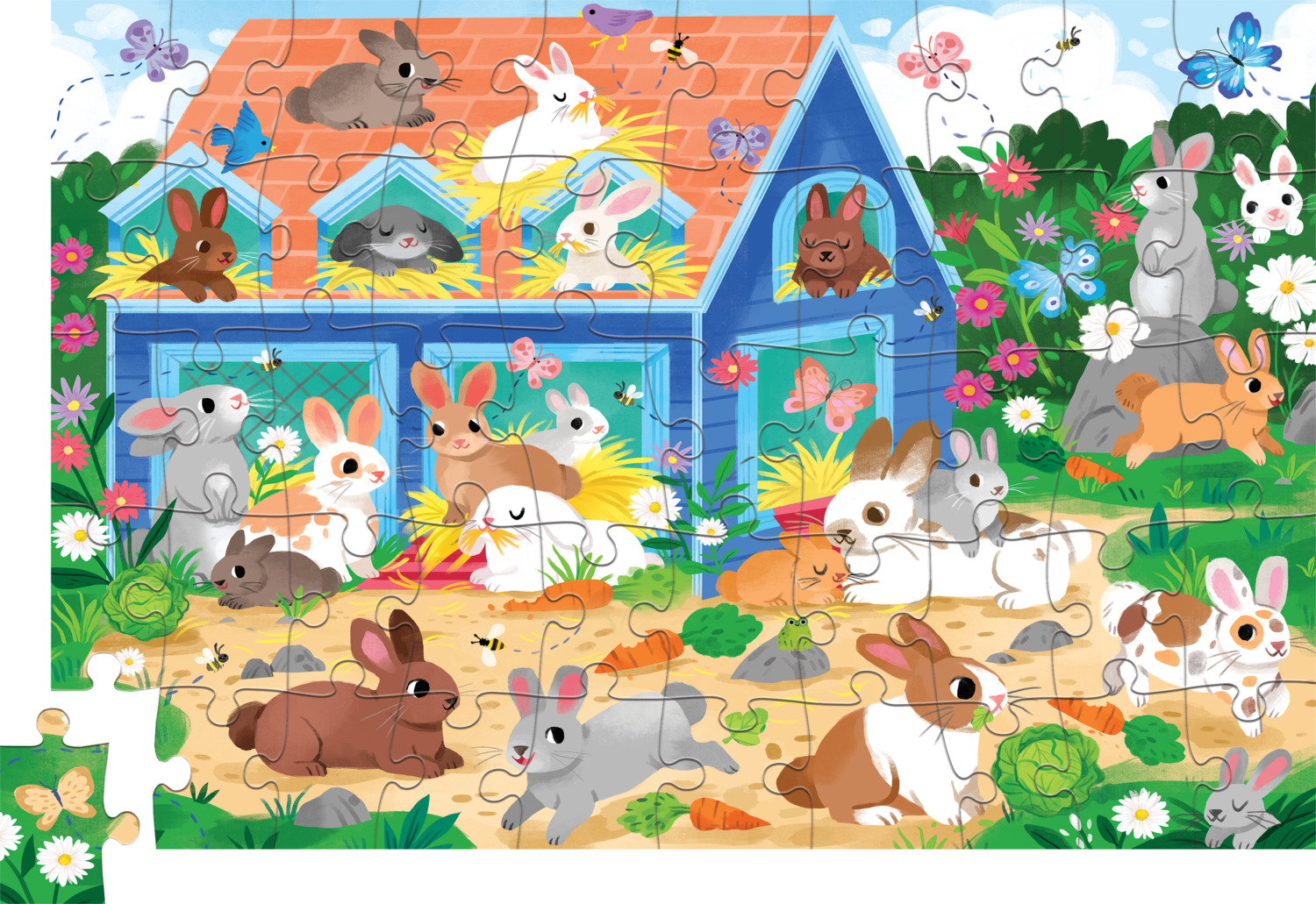 Hop into fun! Our 50-piece Bunny House puzzle in a house-shaped box will delight any little nature lover who adores adorable bunnies.