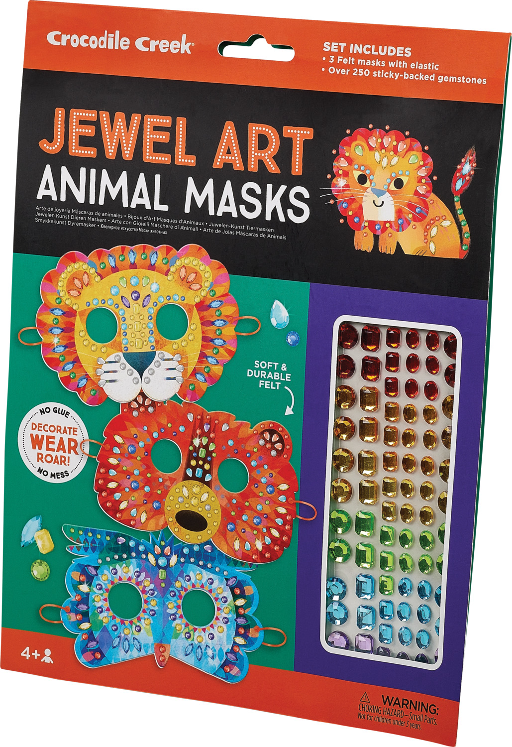 Unleash creativity with this dazzling craft set from Crocodile Creek. Kids can design their own sparkling animal masks featuring a lion, owl, and bear, then decorate them with over 250 colorful sticky-backed gemstones for endless creative possibilities.