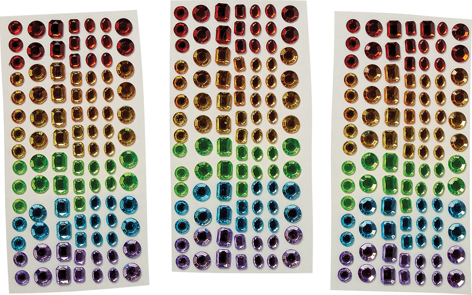 - Over 250 self-adhesive gemstones in multiple colors and shapes