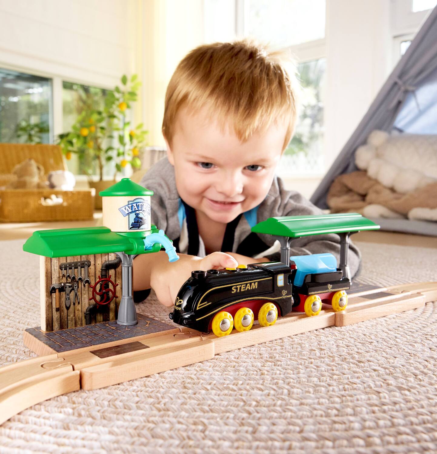 Fill the water tank, hear the horn, and watch as misty steam puffs from the engine—just like a real train! Let your child build stories around their journey, from countryside travels to bustling station stops, while the sensory effects bring the adventure to life.