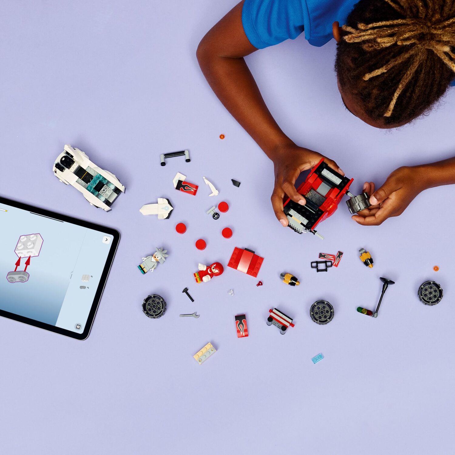 • SILVER THE HEDGEHOG, KNUCKLES AND MORE – The building set includes the first-ever LEGO® minifigure of Silver, a Knuckles minifigure, a toolbox, tools, starting lights and red and white Chaos Emeralds