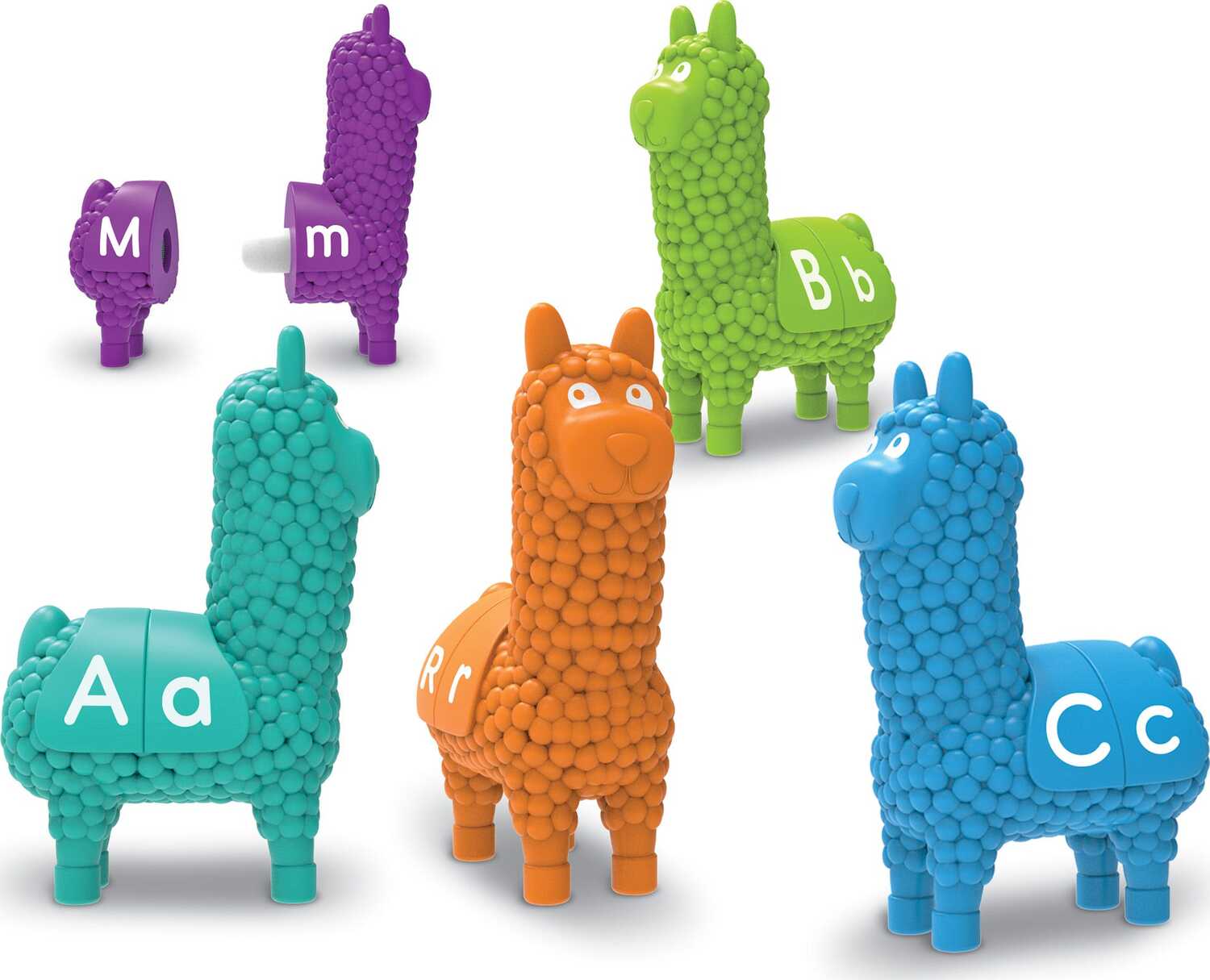 These adorable llamas are ready for alphabet adventures! Kids learn letter and early color matching every time they mix and match the Snap-n-Learn Letter Llamas.